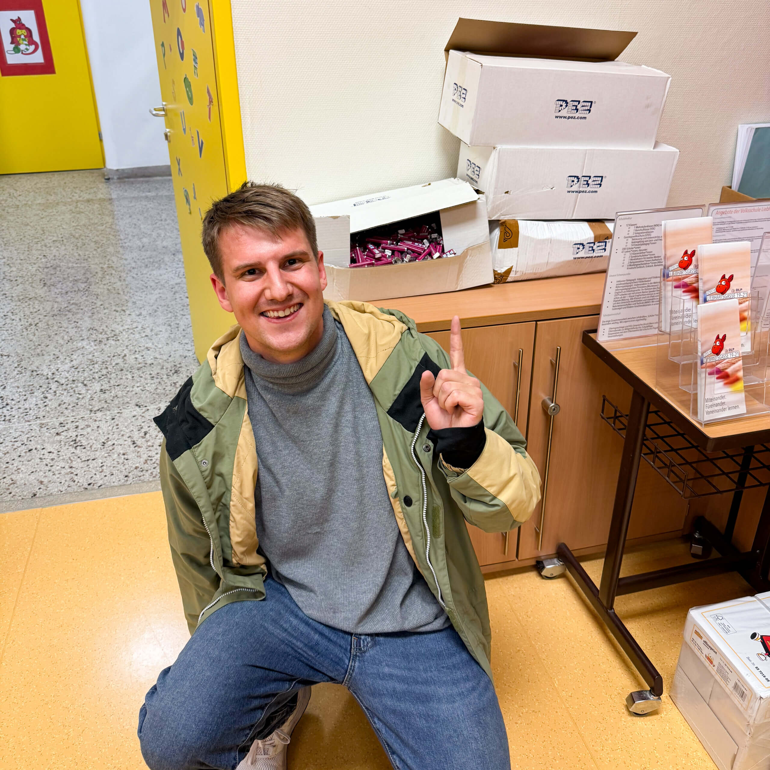 Apropos „Glück“: Dieses ist ja bekanntlich eines der wenigen Dinge, das sich verdoppelt, wenn man es teilt! Und so wollten wir auch außerhalb unserer seminargo Wände ein bisschen Freude verbreiten. Kurzerhand wurde so die Idee geboren, unsere „Nachbarn“ – die Kinder der Volksschule Liebhartsgasse – mit Kartons voller (unseren KundInnen wohlbekannten :)) PEZ-Zuckerl zu überraschen und somit auch ihnen den Tag ein wenig zu versüßen. Ob uns die Überraschung geglückt ist?